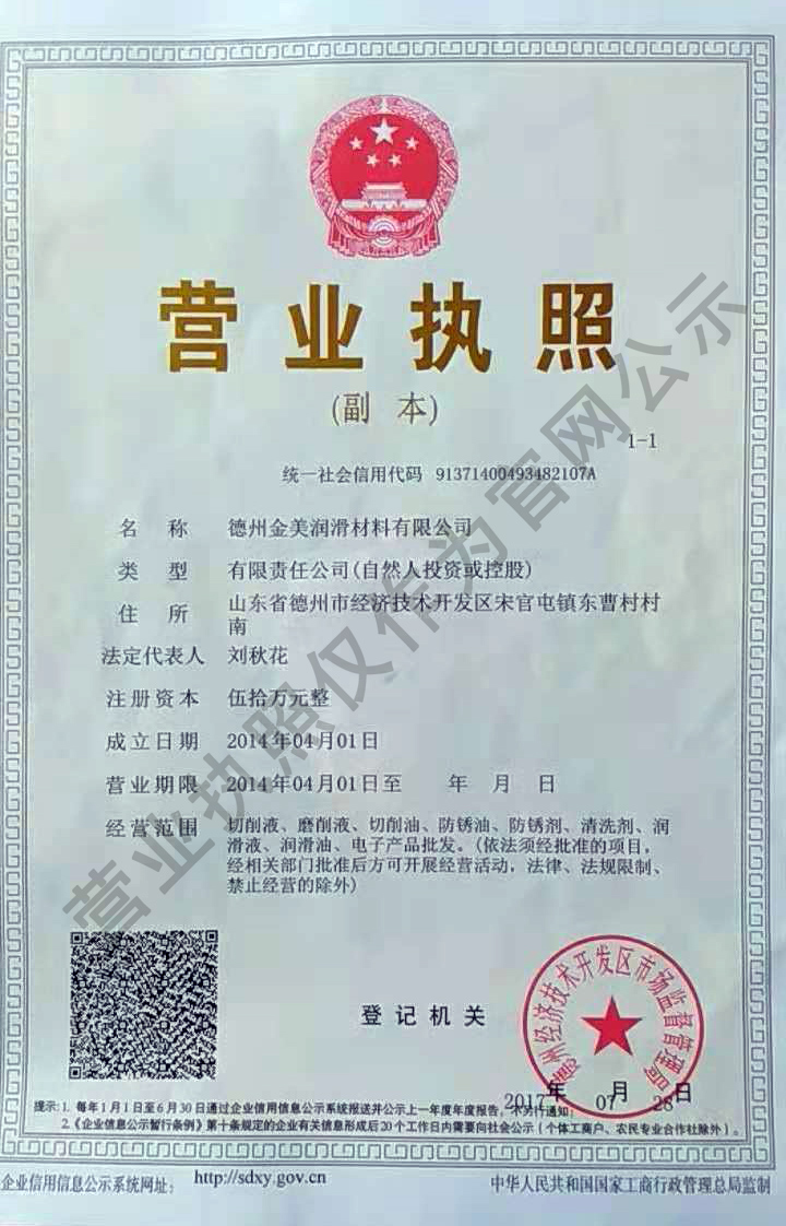 德州金美潤(rùn)滑材料有限公司是專(zhuān)業(yè)從事中、高檔潤(rùn)滑油、切削液、磨削液、清洗劑和各類(lèi)防銹油的研究、開(kāi)發(fā)及生產(chǎn)制造的高科技企業(yè)。從產(chǎn)品的設(shè)計(jì)開(kāi)發(fā)、生產(chǎn)制造及銷(xiāo)售服務(wù),公司采用ISO9000質(zhì)量保證體系管理模式進(jìn)行管理。